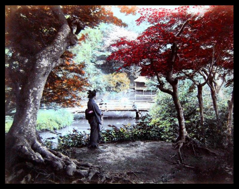 Two Geisha in the Genkyu Gardens of Hikone. Ca.1898-1910
