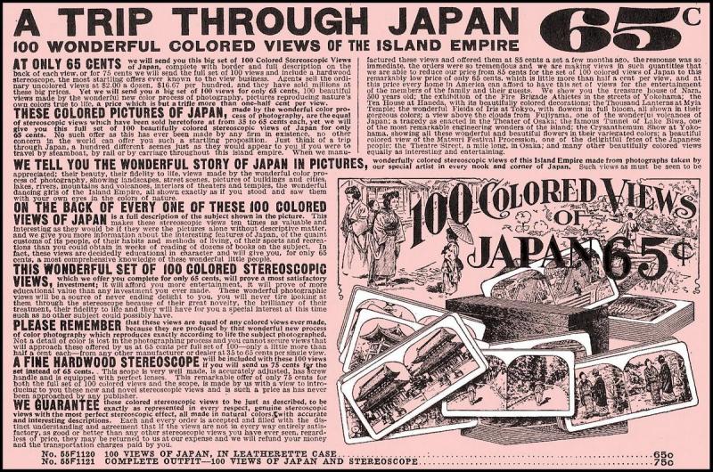 The resulting"mixed series" that utilized at least a few T. ENAMI views included several sets issuedby Underwood & Underwood, C.H. Graves' Universal Photo Art Co., Lynn Skeels' Stereo-Travel Co.,and a good percent of the Japan view published by George Rose of Australia. All of these 3-D publications werein addition to the "pure" Enami series mentioned in No.'s (23), (24), and (25) above ;